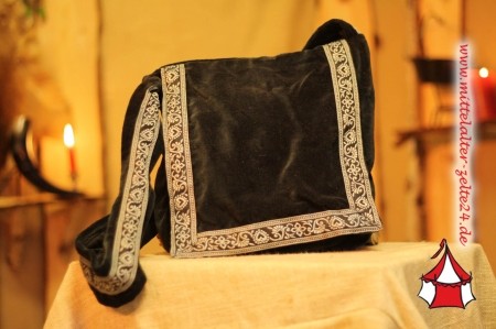 Schöne Handtasche aus schwarzen Samt mit schöner roter oder naturfarbener Ornamenteinfassung. Diese schöne Mittelalterhandtasche passt perfekt zu jedem Mittelalterkleid, Rock & Mittelalter Bluse lässt sich aber auch wunderbar im Alltag zu "normaler" Kleidung zur Jeans tragen.